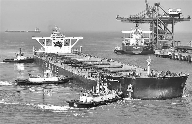 13803万吨,同比增长3.16%。图为4月15日,一艘轮船在拖轮协助下向唐山港曹妃甸港区矿石码头靠泊。(作者:杨世尧)