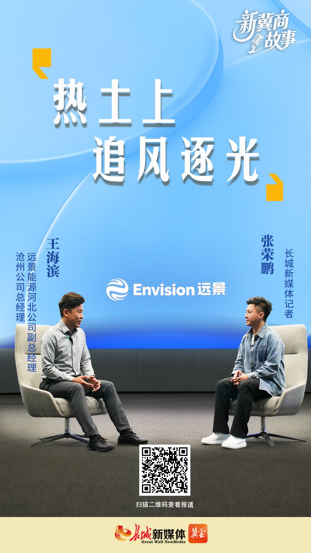 接待我们的,是远景能源河北公司副总经理、沧州公司总经理王海滨。这位来自山东聊城的 80 后企业家,扎根河北、深耕零碳产业,正是我们要寻找的新冀商之一。