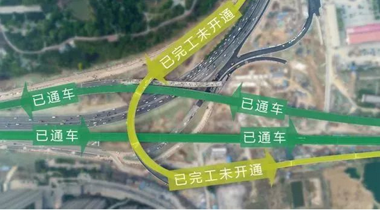 南二环东延路区主线将与天山大街街、昆仑大街、太行大街、东三环实现互通。桥区匝道暂未开放通行。