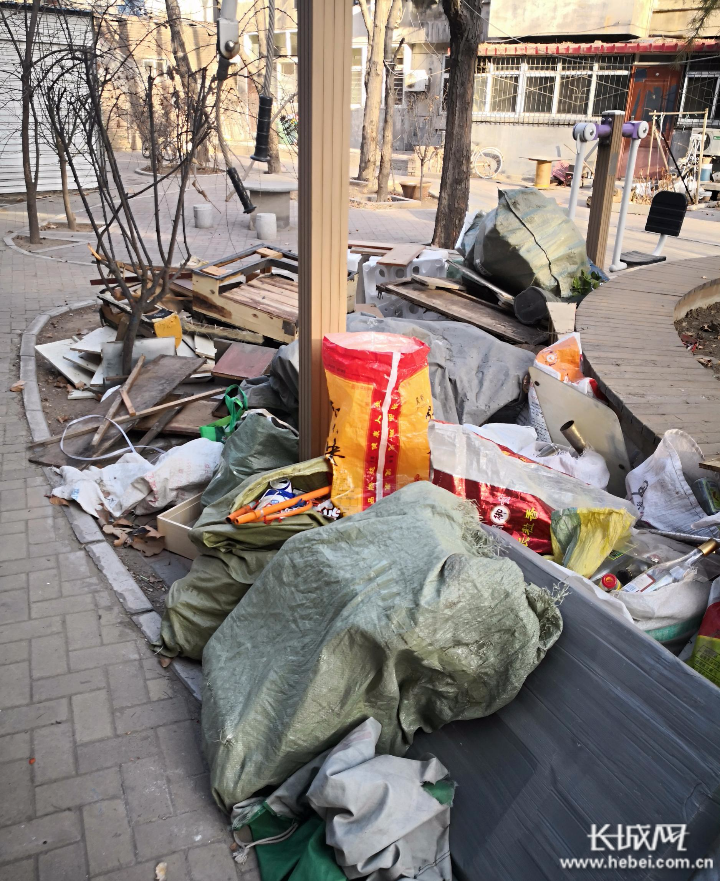 网友系石家庄市联强小区居民,小区100号楼后的小花园内堆积了很多纸盒子、烂木头,无人清理,此外,环卫工人将三轮车和笤帚随意摆放在花园内,希望相关部门早日清理整治,还居民一个整洁的生活环境。