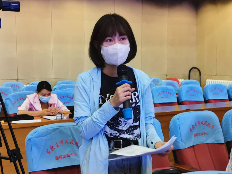 石家庄市生态环境局水生态环境处处长郑璞会后接受记者采访。