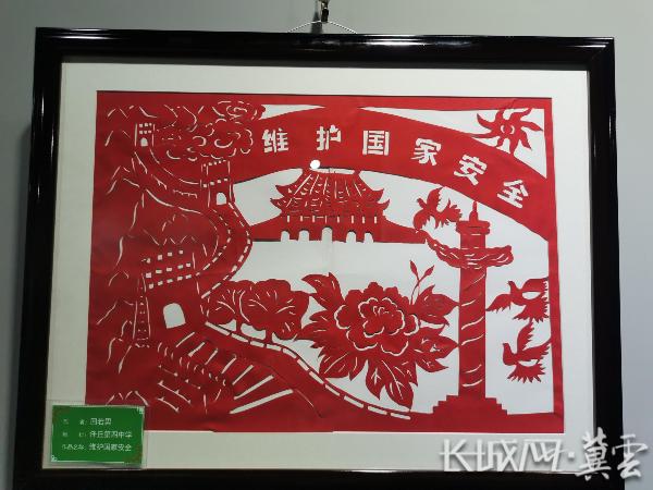 剪纸是任丘市重点非遗项目,也是沧州市市级非遗项目。此次展出的70余幅剪纸作品,将总体国家安全观融入其中,内容丰富、构图巧妙、形象生动。