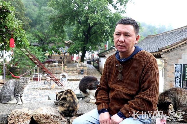 “猫村”负责人周合伟向记者介绍“猫村”情况。长城网·冀云客户端记者 高琳哲 摄