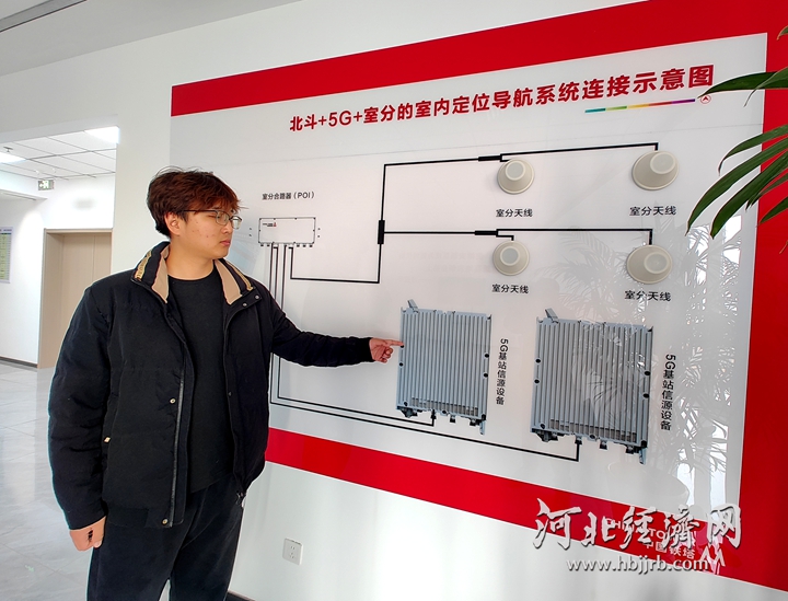技术人员介绍“北斗+室分”地下空间导航系统原理。河北经济日报记者 烟成群 摄