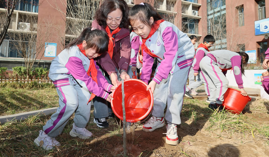 3月12日,西三环与振岗路交叉口河东桥北的山桃花迎着春风盛开。