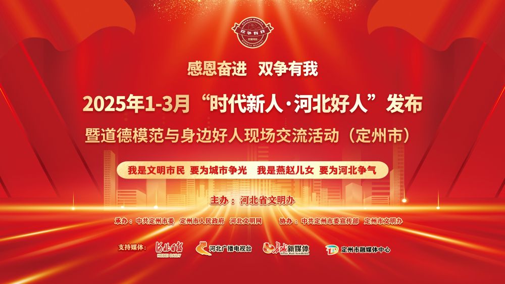 春意盎然,情暖燕赵。4月9日16:00,感恩奋进 双争有我——2025年1-3月“时代新人·河北好人”发布暨道德模范与身边好人现场交流活动将在定州市举行。