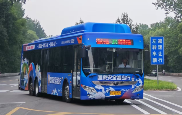 两条“国安号”主题公交专线宣传内容丰富,以滨海旅游景区北戴河鸽子窝等景区为背景,将国家安全知识展示在车体外侧以及内部灯箱、扶手、挡板等明显位置。乘客还可以通过手机扫描二维码了解国家安全相关知识。经过精心点缀的公交专线变成了国家安全宣传教育的“沉浸式课堂”,实现了城市公共出行与国家安全教育深度融合。