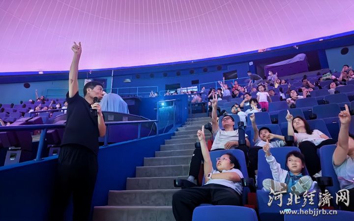 当晚7点,在河北省科技馆宇宙剧场内,科技辅导员为观众生动讲解秋季星空知识,并通过球幕演示璀璨的星座分布。随后,河北师范大学物理学院李冀教授带来《揽月入秋:秋季星空与月球观测》专题讲座,系统介绍了月球的基本特征和观测方法。互动环节中,现场小朋友踊跃提问,“天空为什么是蓝色的”等充满童趣的问题均得到李教授的耐心解答。