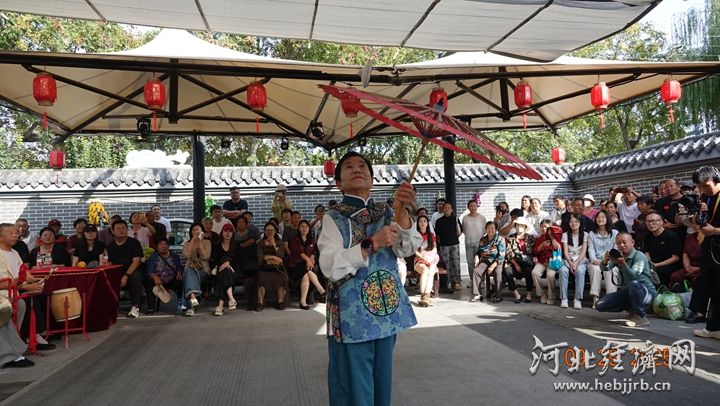 9月29日下午2时30分,吴桥杂技大世界“杂技小院”彭家班世家杂技演出鸣锣开场。72岁的杂技老艺人齐爱红分别将软红球、茶杯盖、帽子,放在伞沿,进行转伞表演。随着伞飞快旋转,茶杯盖也立了起来,同步进行旋转。娴熟的伞技征服现场观众,赢得满堂彩。