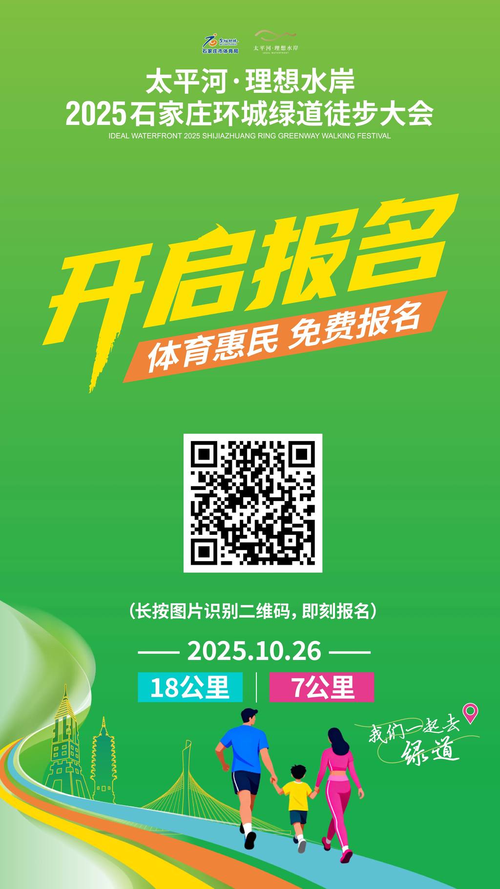 本次活动由石家庄市体育局、石家庄市体育总会主办,石家庄市路跑协会承办,是石家庄101公里环城绿道正式向公众开放后首次举办的大型全民徒步活动。活动设置18公里、7公里两个组别,满足不同能力运动爱好者需求。其中,自我突破的18公里适合徒步进阶,亲子相伴的7公里适合徒步初体验。