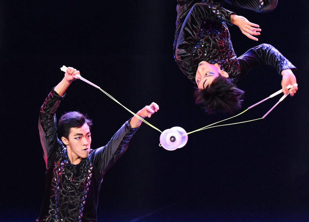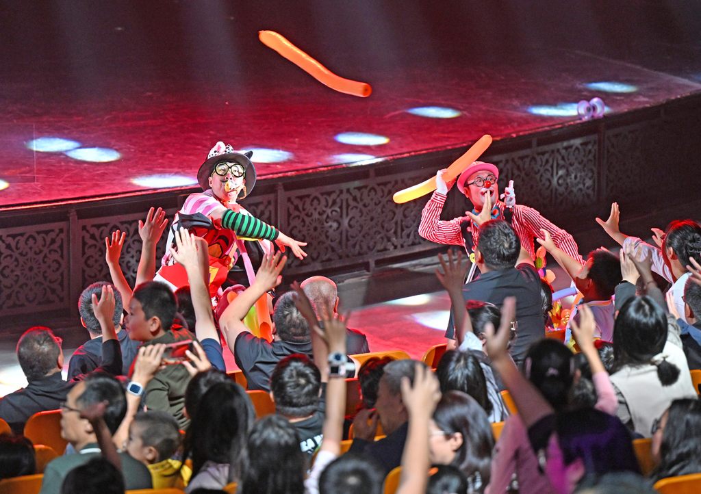 10月6日,演员在第二十届中国吴桥国际杂技艺术节国际杂技盛典开场秀上演出。
