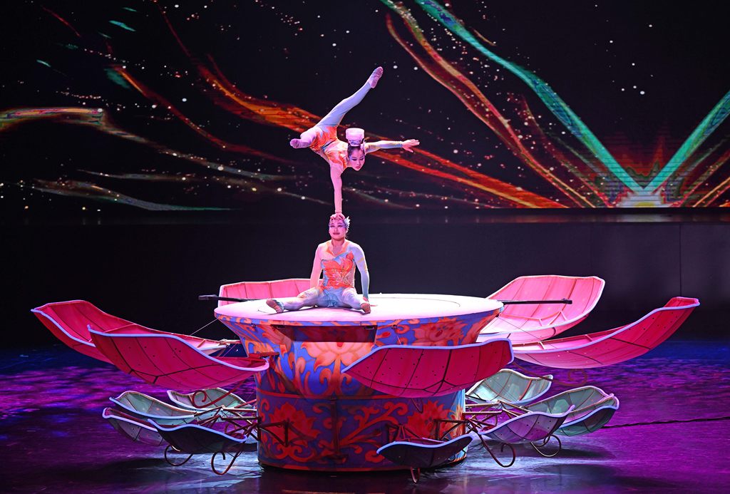 10月6日,杂技演员表演《焕舞华蓉——顶碗》节目。