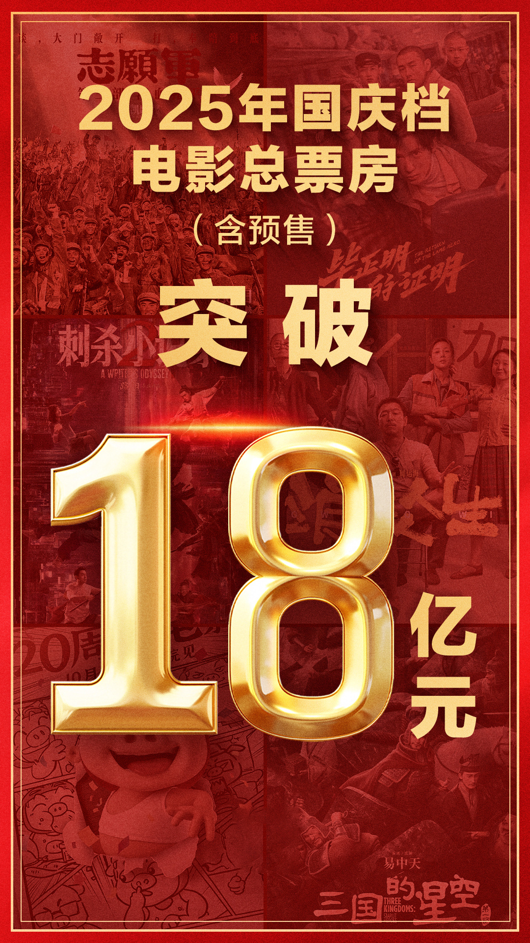 据网络平台数据,截至10月8日15时44分,2025年国庆档电影总票房(含预售)破18亿!《志愿军:浴血和平》《731》《刺杀小说家2》位列前三。