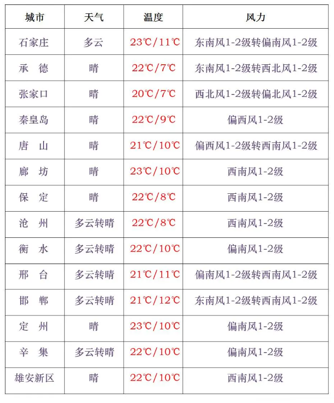 今天白天,石家庄、沧州以南地区多云转晴,其他地区晴间多云。夜间到14日,全省晴间多云。