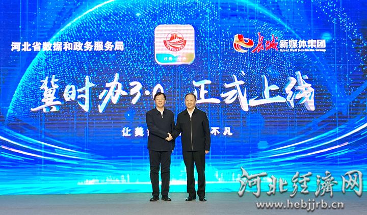 河北省数据和政务服务局党组书记、局长侯贵松和长城新媒体集团党委书记、董事长郭新耀在发布仪式上,共同按下了冀时办3.0版上线按钮。