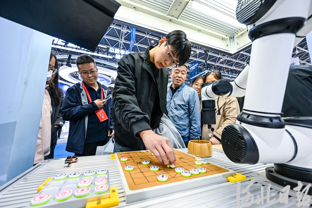 10月17日,观众与智能机器人对弈。