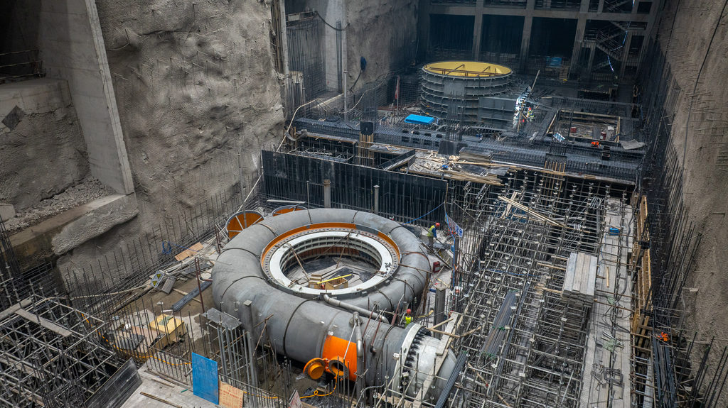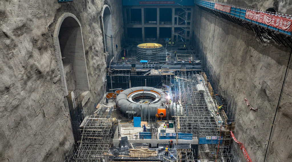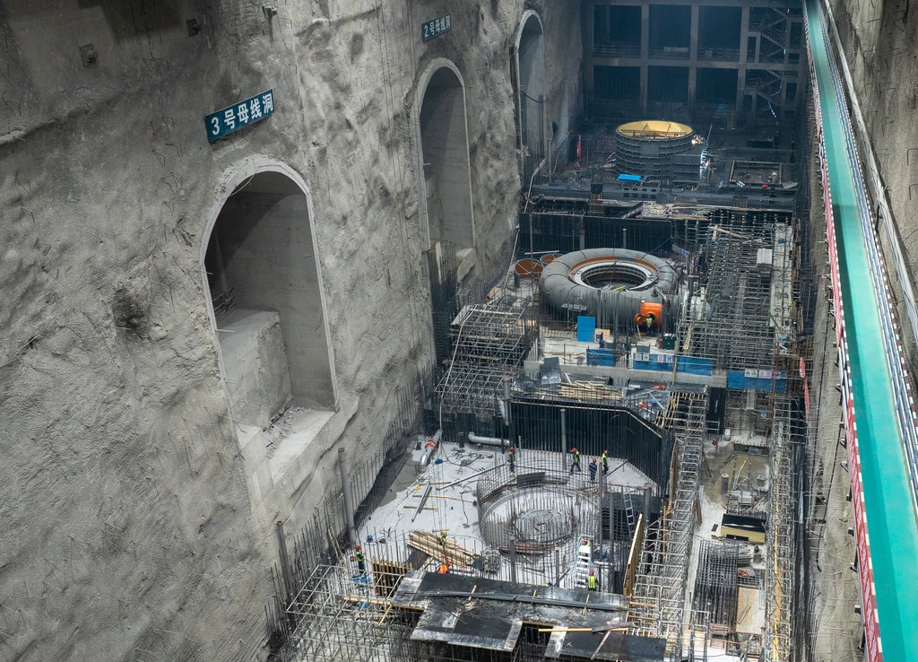 10月15日,国网新源河北抚宁抽水蓄能电站1号、2号机组机电安装施工在有序进行。