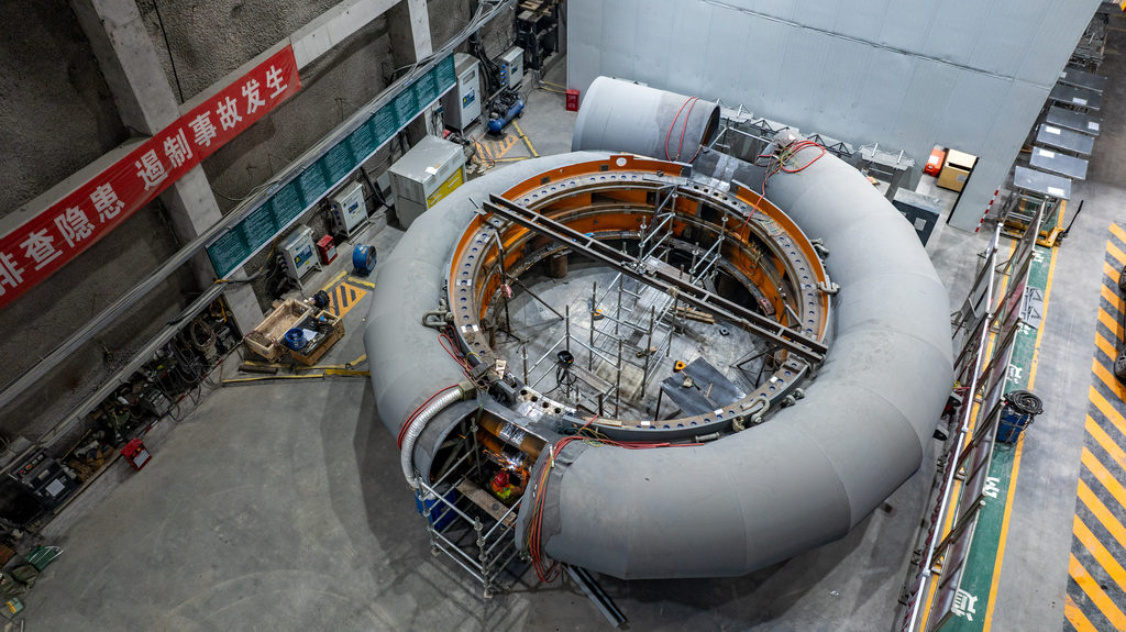 10月15日,国网新源河北抚宁抽水蓄能电站2号机组蜗壳在为打压试验做最后准备。