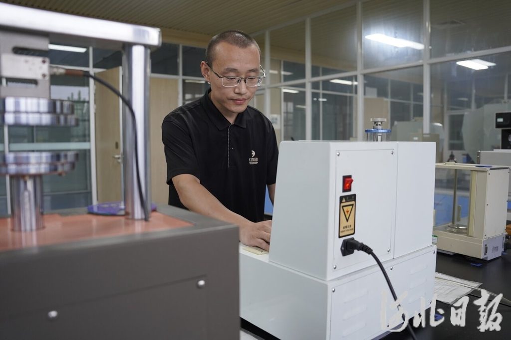 9月28日,河北亿利科技股份有限公司实验室内,工作人员对滤清器零部件进行检验。河北日报记者魏雨摄