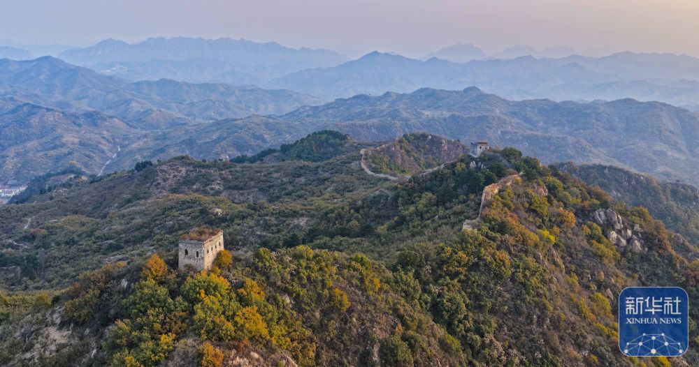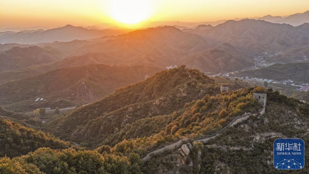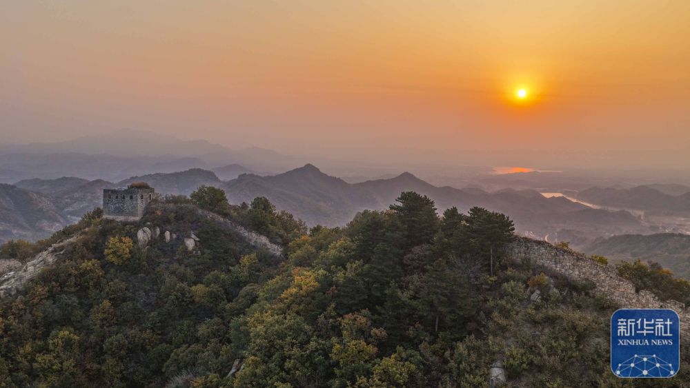 深秋时节,河北省遵化市境内的古长城附近层林尽染,霞光映衬的古长城与远山交相辉映,壮美如画。新华社发(刘满仓摄)