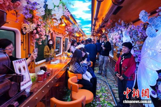 近日,中国首列主题娱乐沉浸式文旅专列“津旅时光号”在天津北站鸣笛启程。班列往返于天津北站与蓟州北站,设置了复古客座车厢、互动演艺车厢、珍奇花园俱乐部车厢等不同主题,让游客感受沉浸式互动体验。