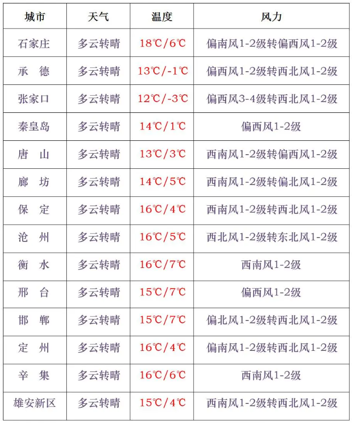 今天白天,全省多云。今天夜间到9日,张家口北部、承德北部晴转多云,其他地区晴间多云。