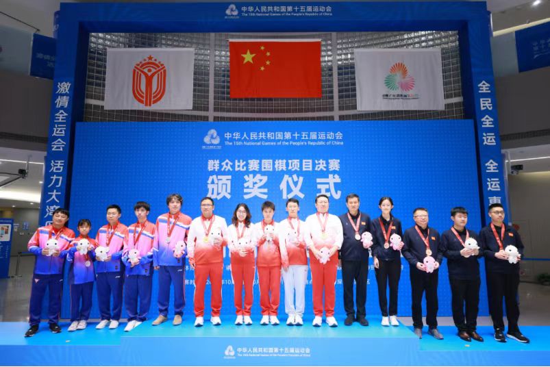 河北围棋队获得全运会群众比赛全民团体组铜牌(最右)。图片来自河北省棋牌运动中心