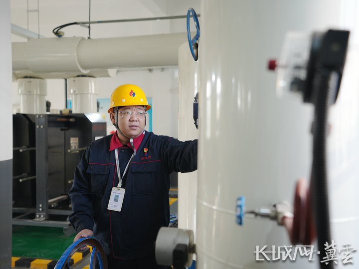 “热能经过板式换热器转换到二次网,降温降压,才能最后送入居民家中。”话音未落,高雷转身查看一次网、二次网的温度、压力、流量是否正常,又侧耳倾听循环泵有无异响、泵体是否过热,随后认真填写手中的巡检记录。