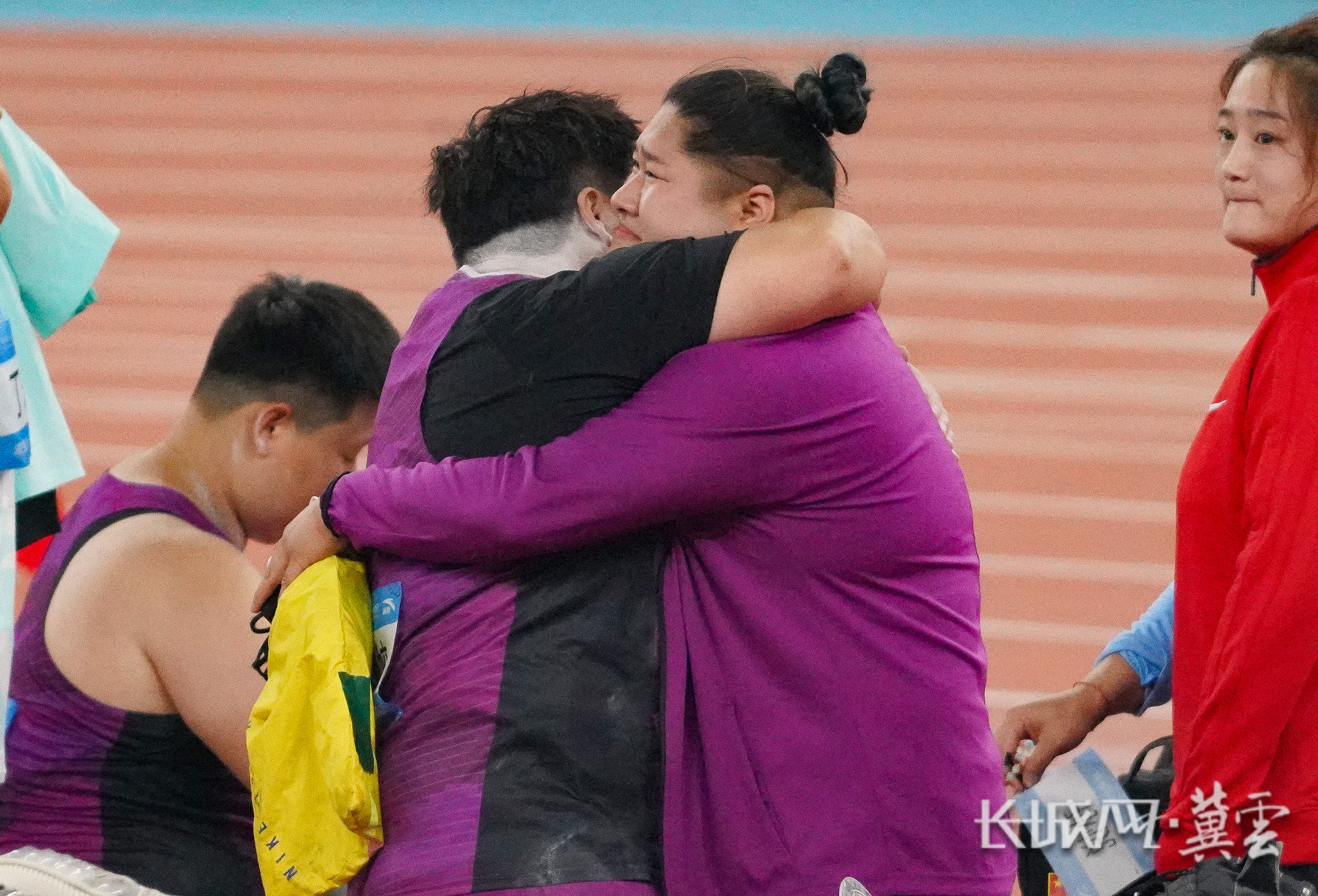 张林茹(右二)与巩立姣相拥而泣。长城网·冀云客户端记者 韩颜 摄