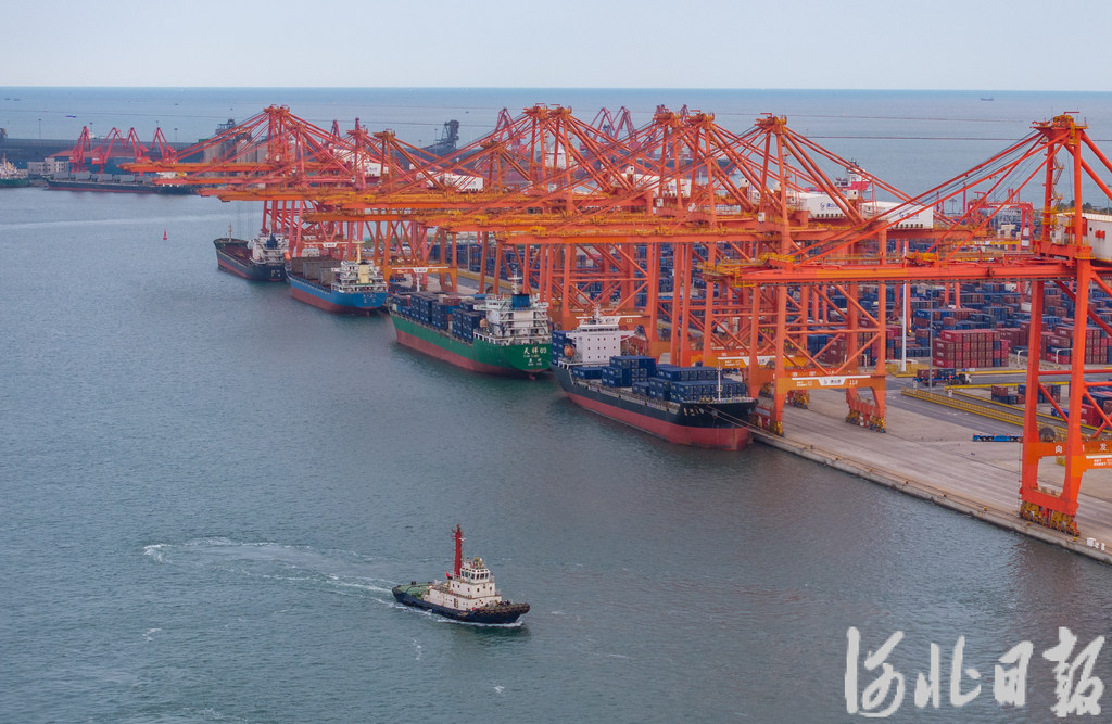 10月23日,河北港口集团京唐港区,货轮正在进行集装箱装卸作业。河北日报记者 赵杰摄