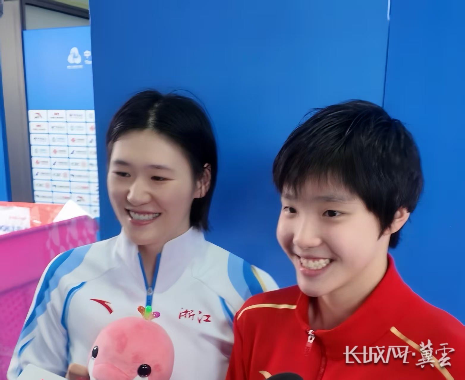 叶诗文(左)与于子迪(右)在赛后接受媒体采访。长城网·冀云客户端记者 白璐 摄