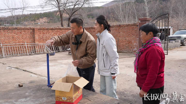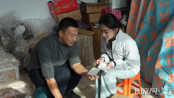 于立华(左一)在村民家中收农货。长城网·冀云客户端 祁鑫 摄