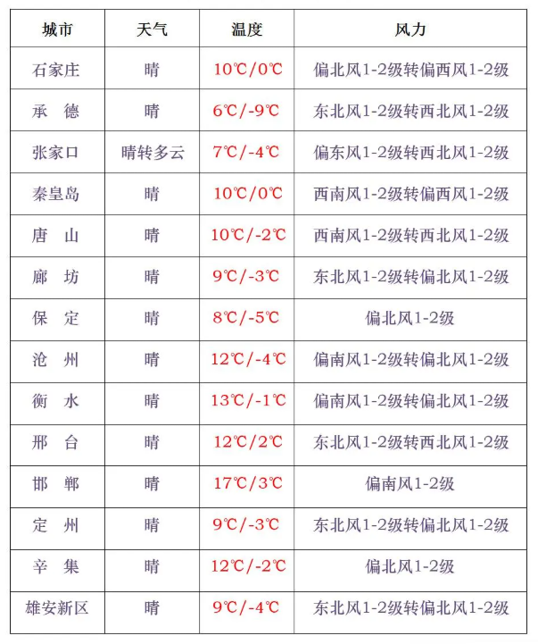 今天白天,全省晴间多云。今天夜间到29日,张家口北部、承德北部晴转多云,其他地区晴间多云。