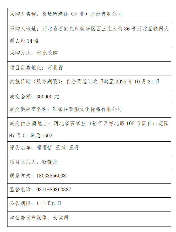 拍摄制作“美丽河北”系列短视频名窑名瓷项目成交结果公告