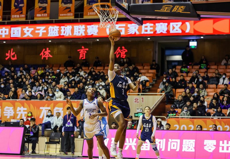 12月2日,石家庄英励女篮3号外援戴维斯(右二)在比赛中。