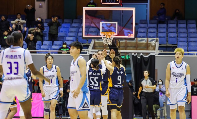 12月2日,石家庄英励女篮队员庆祝胜利。