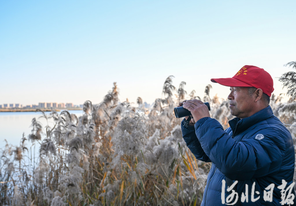 11月18日,巡护员李国忠在查看候鸟栖息情况。