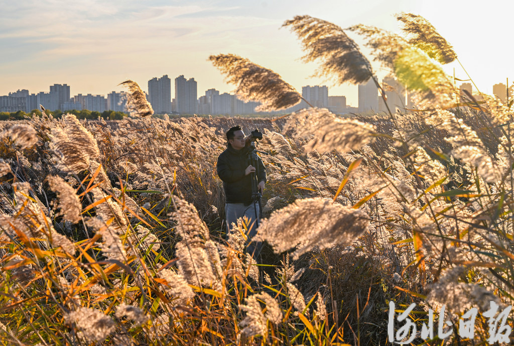 11月17日,摄影爱好者李明在拍摄候鸟。