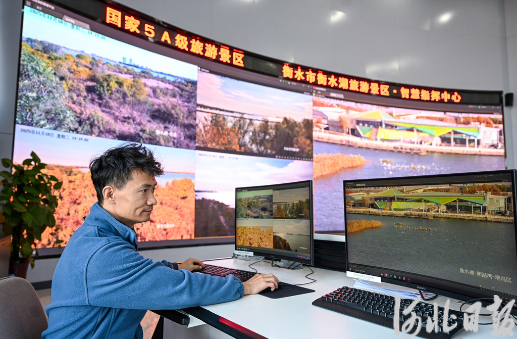11月18日,衡水湖旅游景区智慧指挥中心主任王志鹏查看监控系统。
