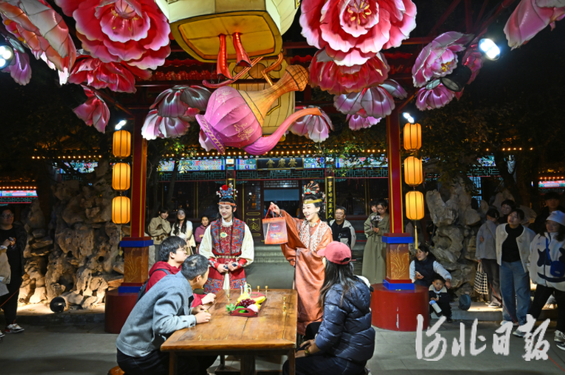 11月9日,游客在正定荣国府景区观看“一梦入红楼”沉浸式夜游演出。河北日报记者 赵永辉 摄