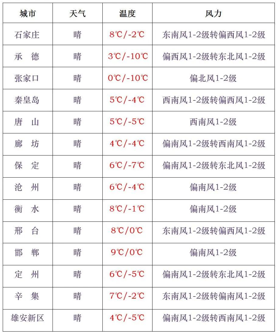今天早晨,北部和南部地区最低气温下降4~6℃,其他地区下降2~4℃。今天白天,全省晴间多云。