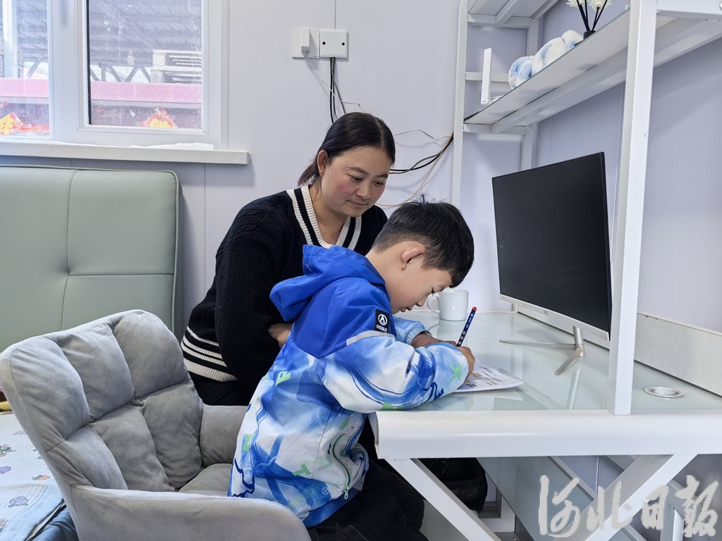 11月25日,承德市兴隆县六道河镇六道沟村村民王洋洋在新房辅导孩子学习。河北日报记者冯阳摄