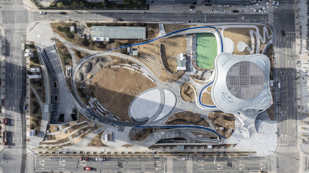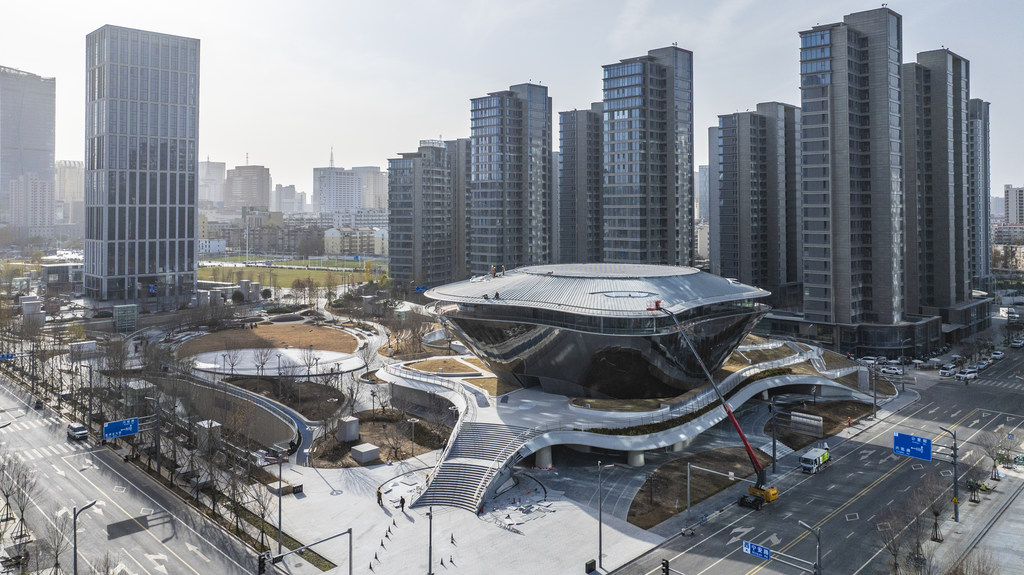 12月7日拍摄的石家庄市云朵体育馆及云朵公园。