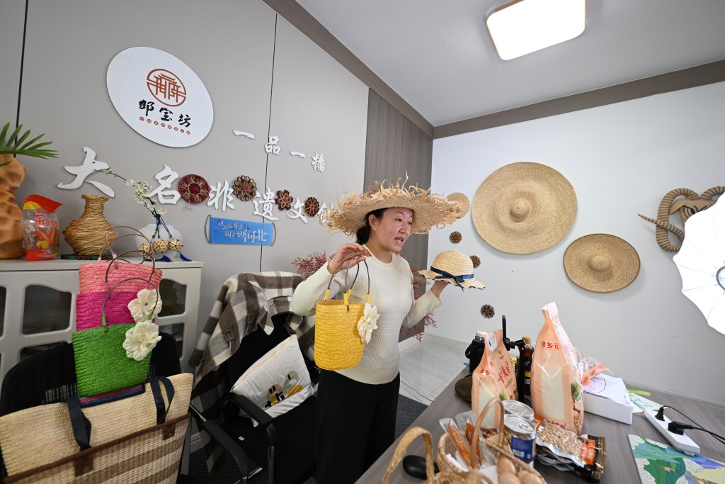 11月12日,在大名“一品一播”产业园电商孵化中心,主播在直播售卖大名非遗产品。