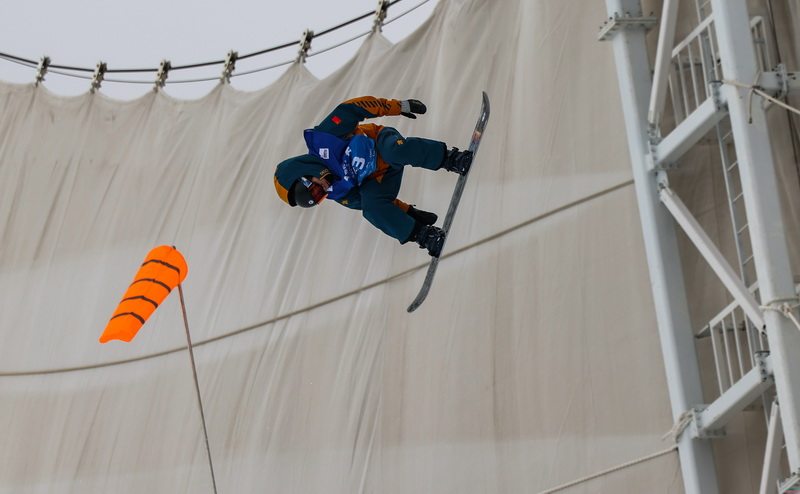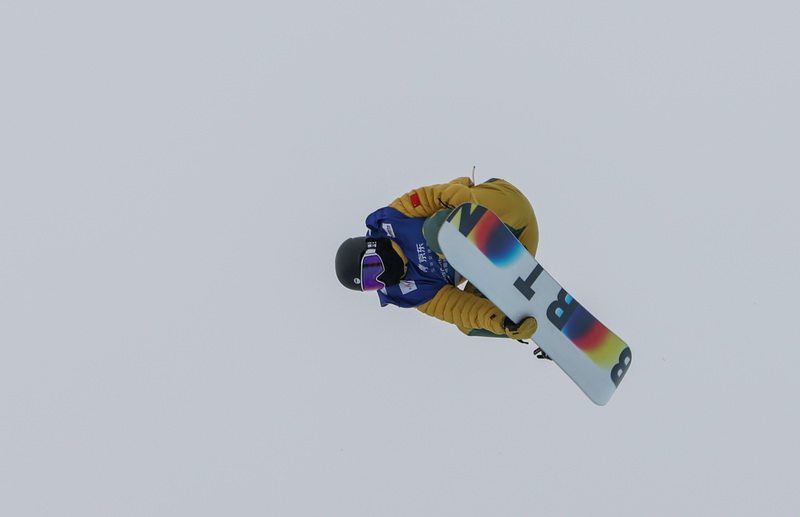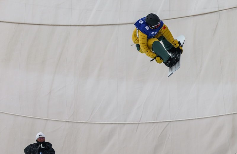 12月10日,记者拍摄的国际雪联单板滑雪U型场地资格赛现场。