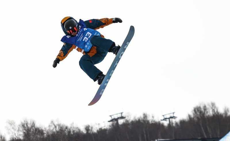 参加了今天的单板滑雪U型场地资格赛