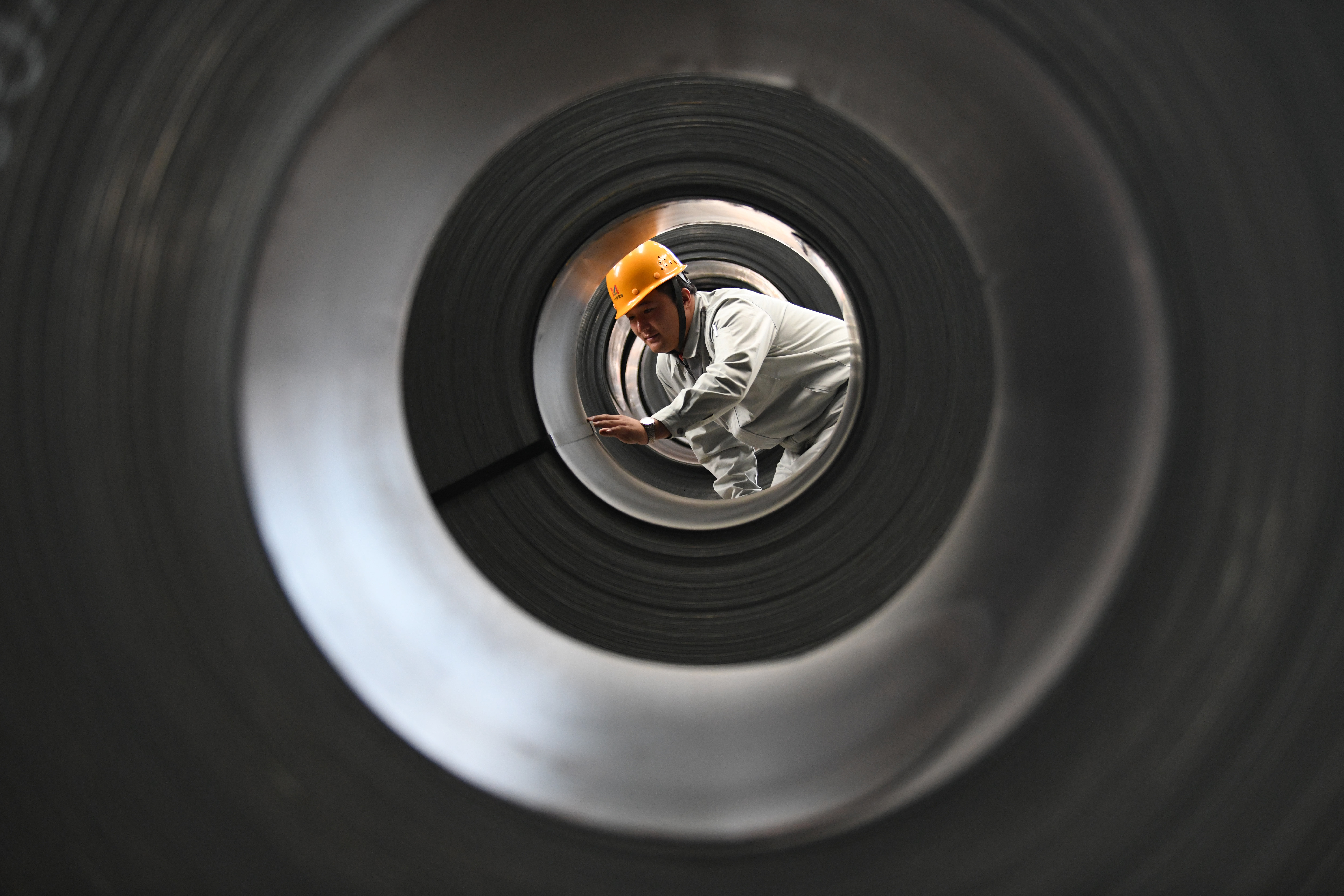 在河北省承德市双滦区河北美富淦钒钛高端数字化系列冷轧生产制造项目车间,工人正在忙碌(陈琦嘉/摄)