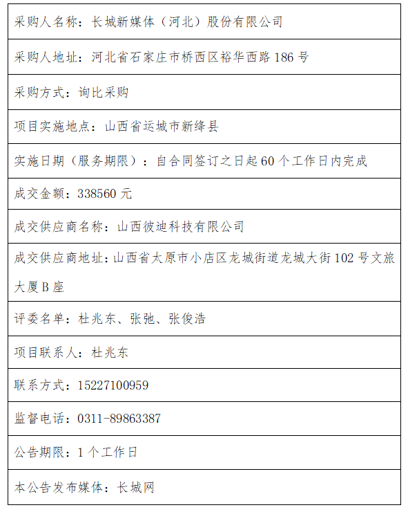 长城新媒体集团有限公司《问政会客厅》精品栏目全媒体传播推广项目采购成交结果公告