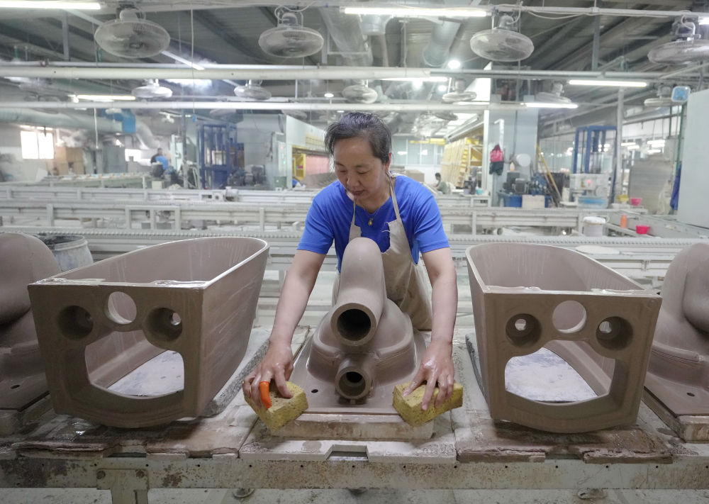 ↑12月26日,工人在唐山海港经济开发区一家卫浴企业的生产车间工作。