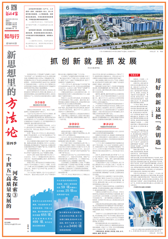 面对艰巨繁重的改革发展任务,河北充分发挥创新的引领带动作用,聚焦关键、精准发力,打破机制体制壁垒,推动创新要素高效聚合,加快发展新质生产力,为经济社会高质量发展注入强劲动力。